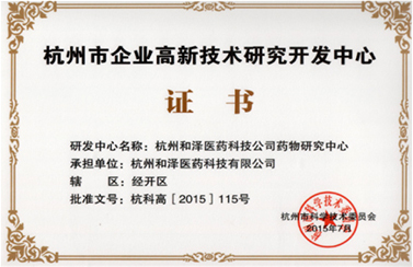 02. Ezpay医药药物研究中心取得“市级高新技术研发中心”称号。